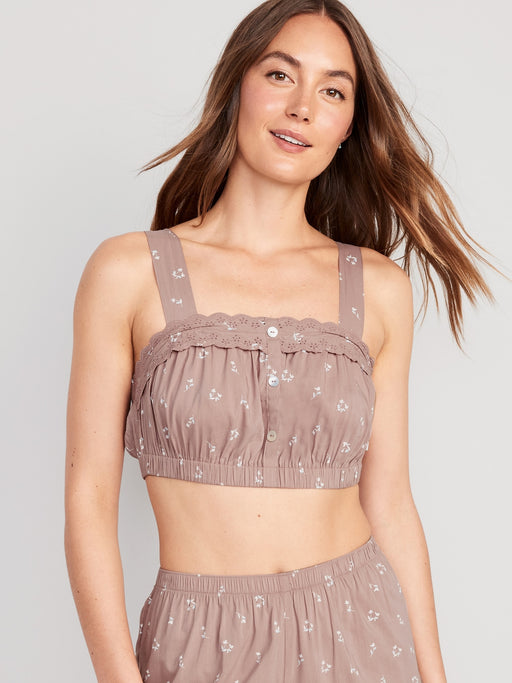 Sleeveless Button-Front Bralette Pajama Top for Women