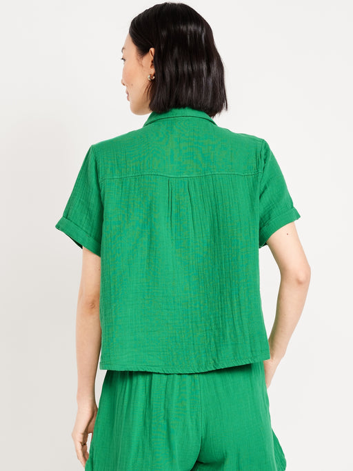 Crinkle Gauze Loose Button-Down Shirt