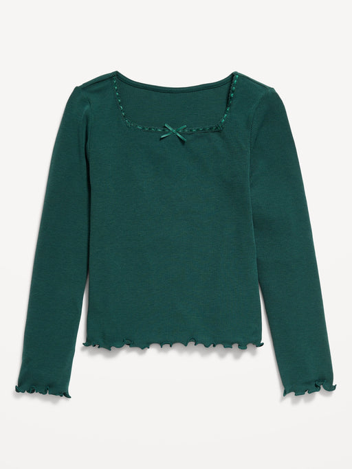 Long-Sleeve Square-Neck Ribbon-Bow Top for Girls