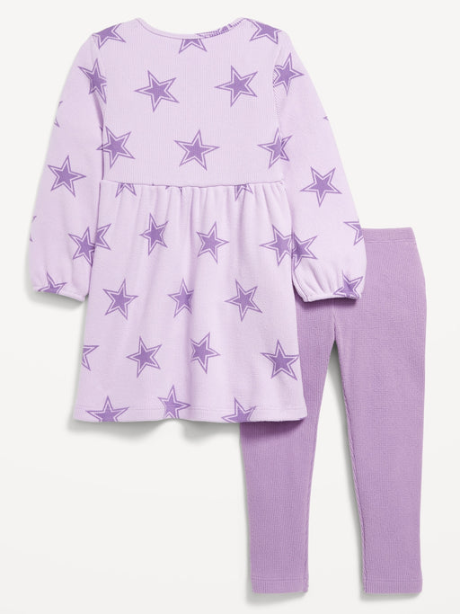 Long-Sleeve Thermal-Knit Dress and Leggings Set for Toddler Girls