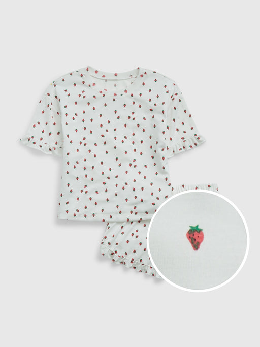 Kids 100% Recycled Strawberry PJ Shorts Set - new off white