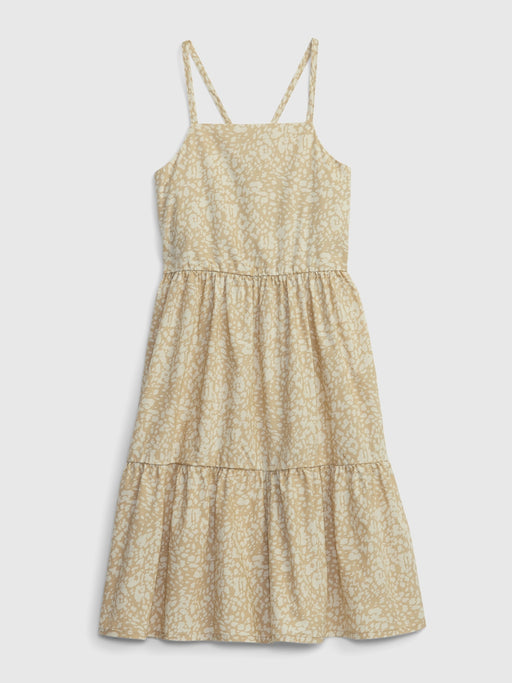 Kids Gauze Tiered Dress - khaki animal print