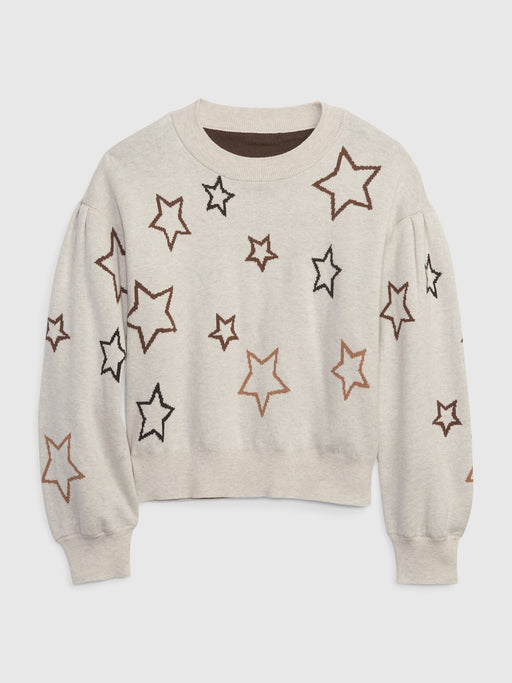 Kids Shaker-Stitch Sweater - white star print