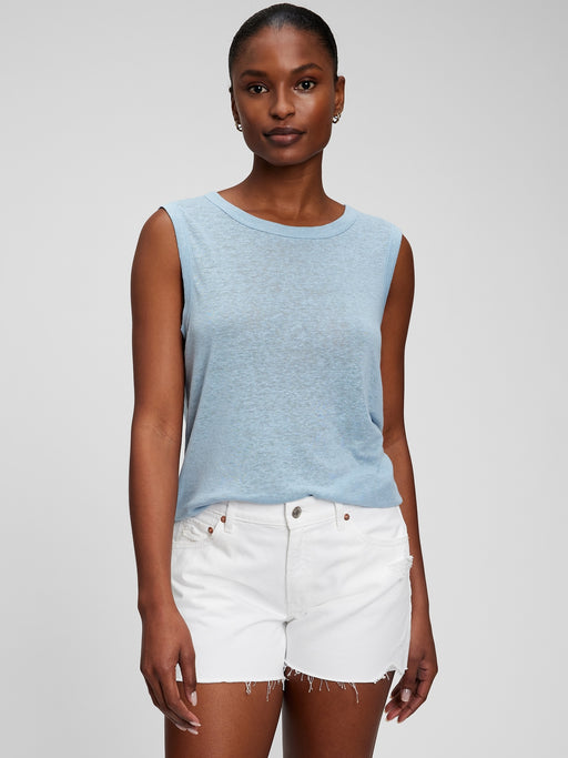 Linen Blend Muscle Sleeveless T-Shirt - blue ice