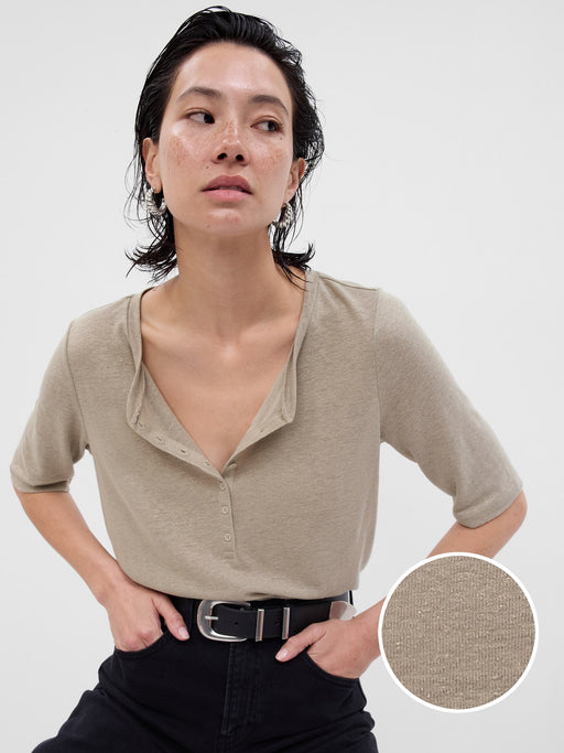 GapOriginal price $34.95Original price $34.95 - Original price $34.95Original price $34.95$24.00 - $34.95$24.00 - $34.95Current price $24.00| /Linen-Blend Henley T-Shirt