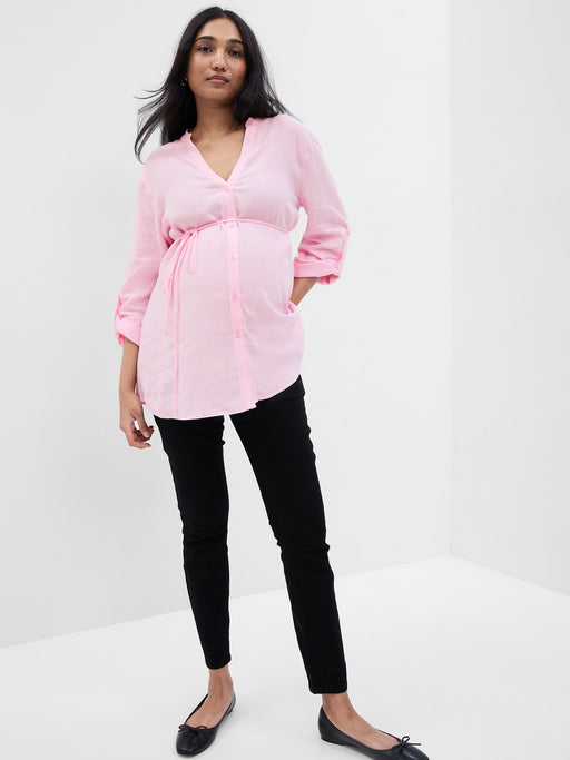 Maternity Linen-Blend Button-Down Shirt