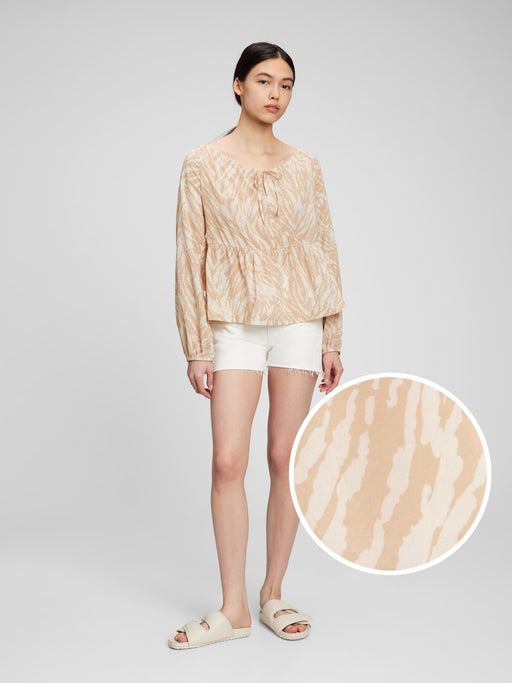 Printed Tie-Front Peplum Top