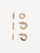 - Set includes 3 pairs of gold-plated hoop earrings with stud fastenings in varying styles:
