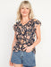 Flutter-Sleeve Floral-Print Swing Blouse for Women
