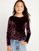 Long-Sleeve Crushed Velvet Ruched-Hem Top for Girls