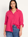 Crinkle Gauze Button-Down Boyfriend Shirt