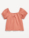 Puff-Sleeve Textured Sweetheart-Neck Top for Girls