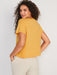 - Rib-knit crew neck; short drop-shoulder sleeves.
