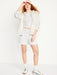 relaxed fit hits below waist models are approx. 5'9" and wear sizes s (4), l (12) and xl (18)