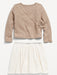 Long-Sleeve Ribbed Wrap-Front Top and Velvet Skirt Set for Toddler Girls