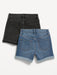 - Pack includes 2 pairs of rolled-cuff, frayed hem jean shorts, each in a different wash.