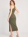 Fitted High-Neck Rib-Knit Maxi Dress for Women