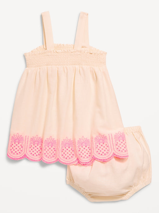 • Sleeveless Smocked Embroidered Top and Bloomer Shorts Set for Baby