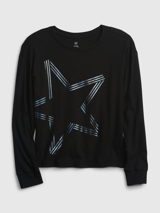 Kids 100% Organic Cotton Boxy Long Sleeve Graphic T-Shirt - true black