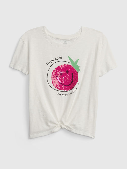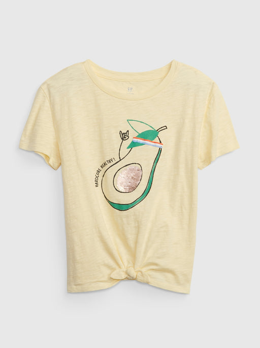 Kids 100% Organic Cotton Flippy Sequin Tie-Front Graphic T-Shirt