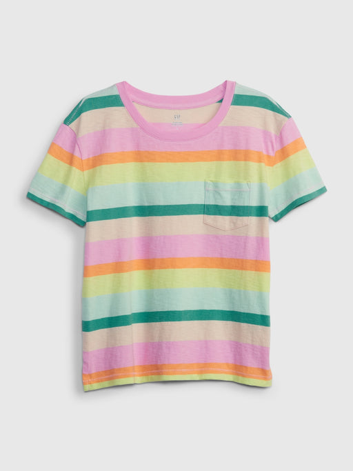 Kids 100% Organic Cotton Boxy Pocket T-Shirt - multi stripe
