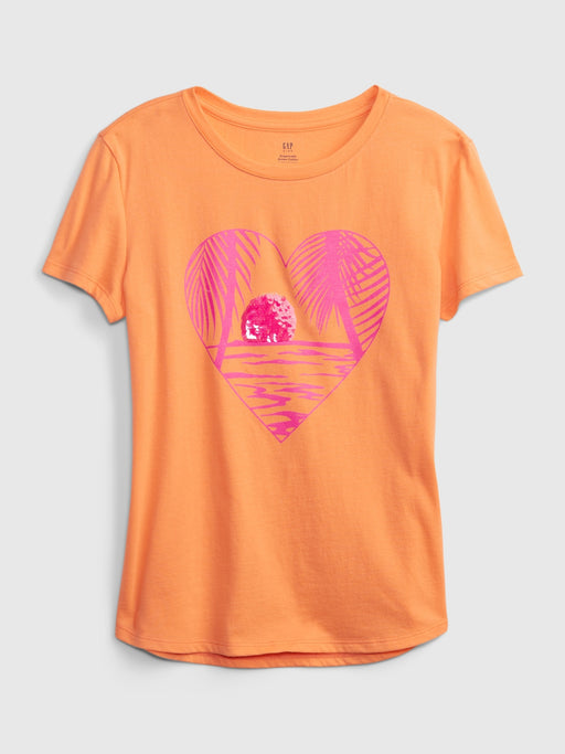 Kids 100% Organic Cotton Flippy Sequin Graphic T-Shirt - orange neon coral