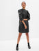 Puff Sleeve Faux-Leather Mini Shirtdress