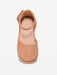 - Faux-leather or canvas upper, with adhesive secure-close buckle at ankle.