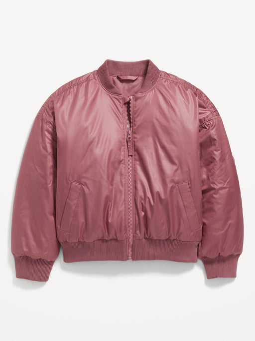 Water-Resistant Zip-Front Bomber Jacket for Girls