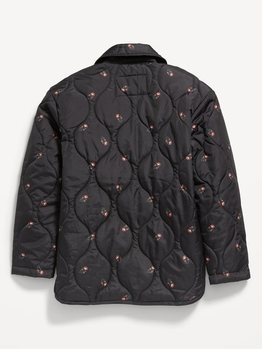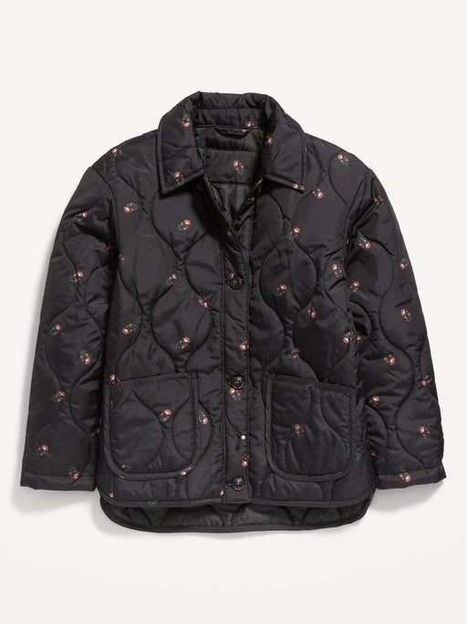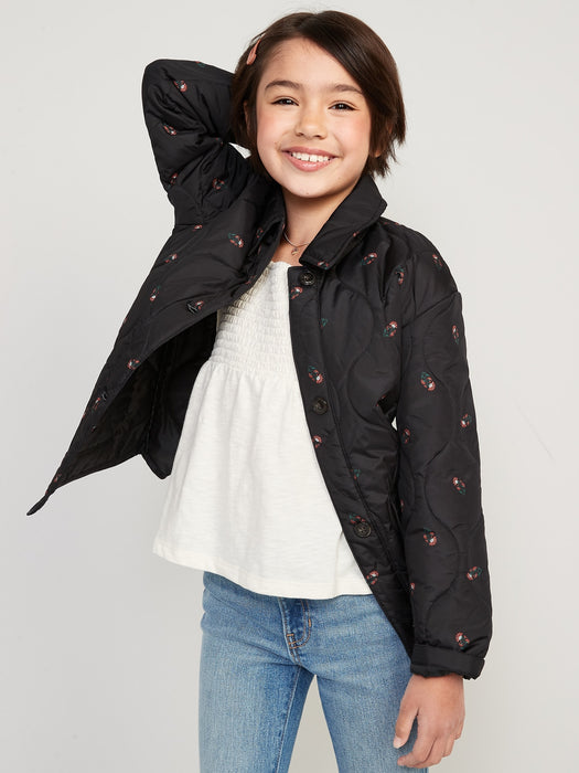 Water-Resistant Quilted Button-Front Jacket for Girls