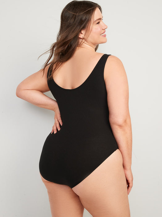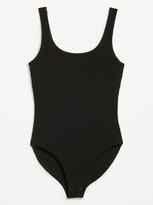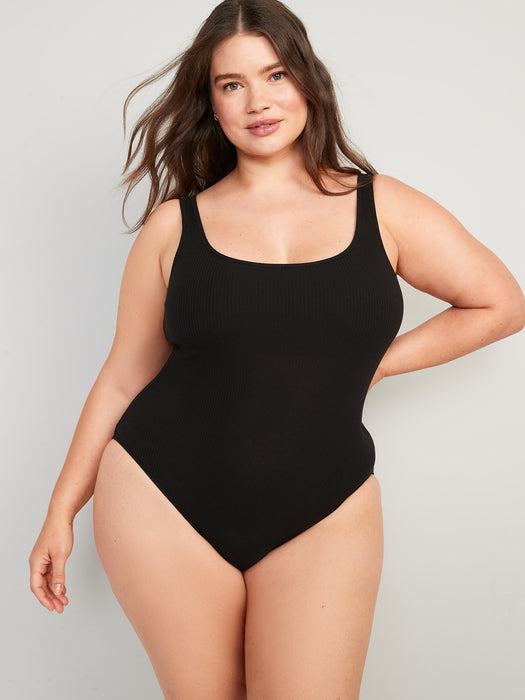 Fitted Rib-Knit Sleeveless Shelf-Bra Bodysuit for Women