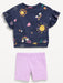 Printed Short-Sleeve Ruffle Top and Biker Shorts Set for Toddler Girls