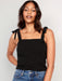 Fitted Tie-Shoulder Cropped Dobby Corset Cami Top for Women