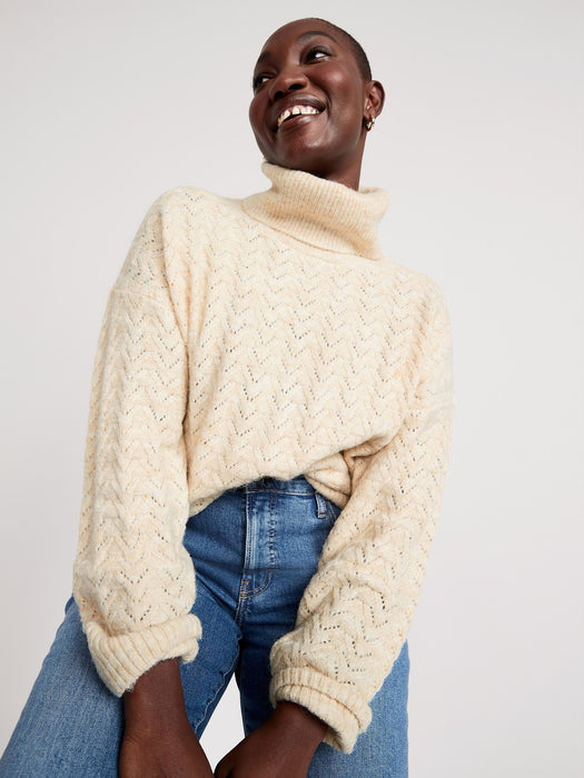 Heathered Pointelle-Knit Turtleneck Sweater for Women