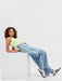 - Look: A distressed five-pocket jean in a light wash with side stripe detail down the legs.
