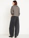 sits at belly button baggy barrel shape through hip and thigh hits at ankle 26" regular inseam 24" petite inseam 29" tall inseam models are approx. 5'9" and wear sizes s (4), l (12), and xl (18)