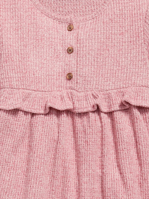 Long-Sleeve Thermal-Knit Henley Dress for Toddler Girls
