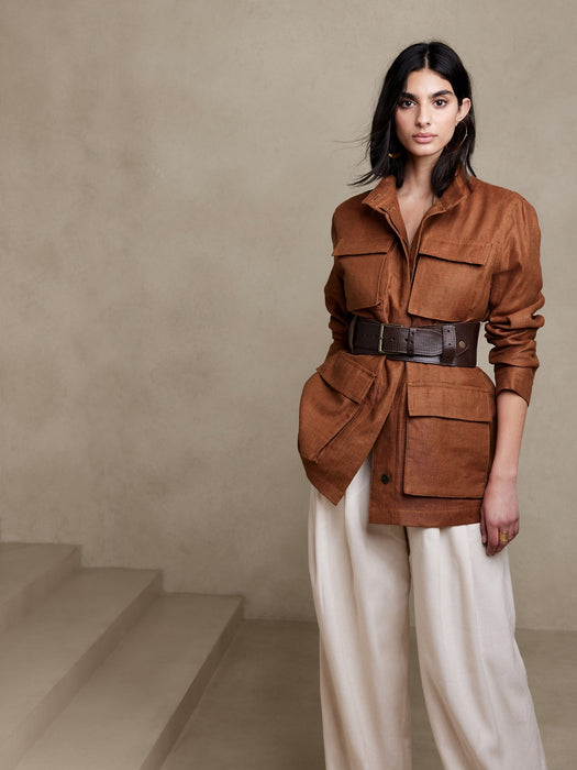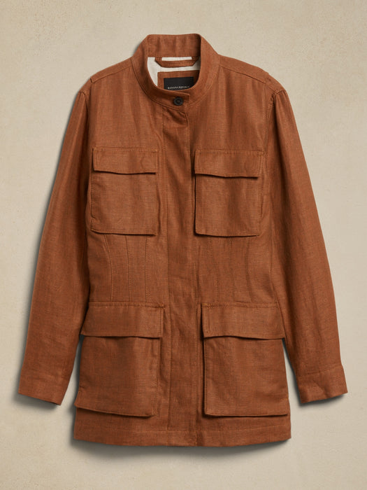 - Structured mastery, this beautiful linen jacket employs lightweight and luxurious linen, a breathable fabrication that stays cool and fresh, even in heat and humidity. An update on the vintage classic M-56 field jacket, our version uses a halo of darts at the waist for figure-complementing appeal.