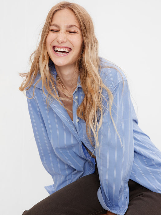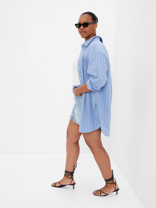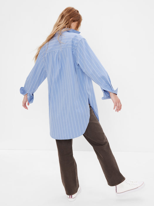 100% Organic Cotton Weekend Tunic Shirt - blue & white stripe