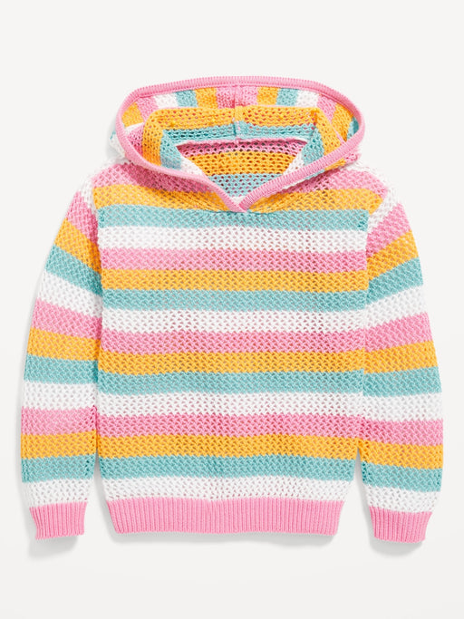 Crochet-Knit Pullover Hoodie for Toddler Girls
