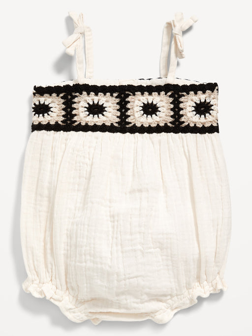 Sleeveless Crochet-Trim One-Piece Romper for Baby