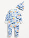 Unisex Printed Sleep & Play 2-Way-Zip Footed One-Piece and Beanie Set for Baby