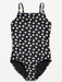 Printed Square-Neck Lattice-Back One-Piece Swimsuit for Girls