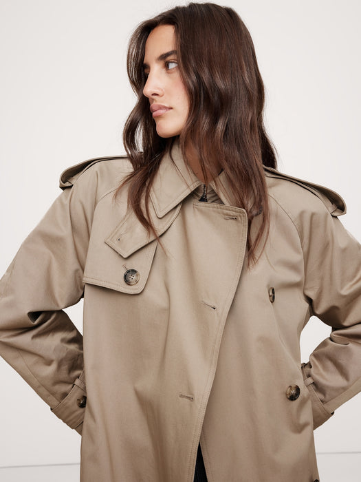 - We cut this classic trench coat from a sturdy cotton twill that's specially treated to keep the elements out. This one is a little lighter than last year's so you can layer it easily through seasons to come.Water-Resistant