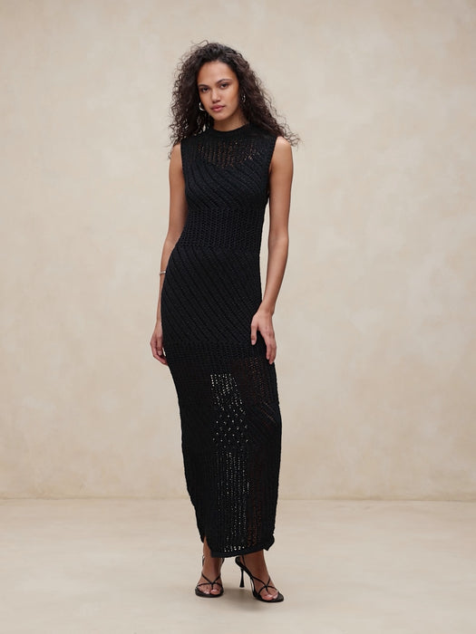 Cotton-Blend Open-Stitch Maxi Dress