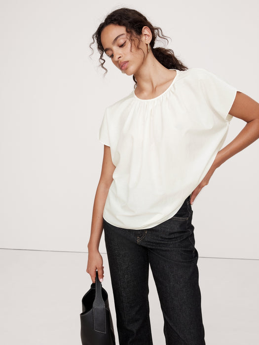 Cotton-Silk Tulip-Sleeve Shirt