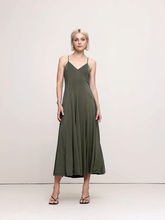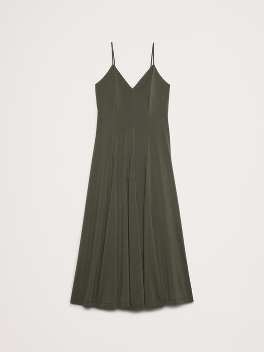 - This flowing maxi dress uses a paneled construction and inset godets to create a dramatic, sweeping skirt. Here, we cut it in our favorite softly draping jersey fabric—one we love for its silky feel against the skin and sophisticated finish.