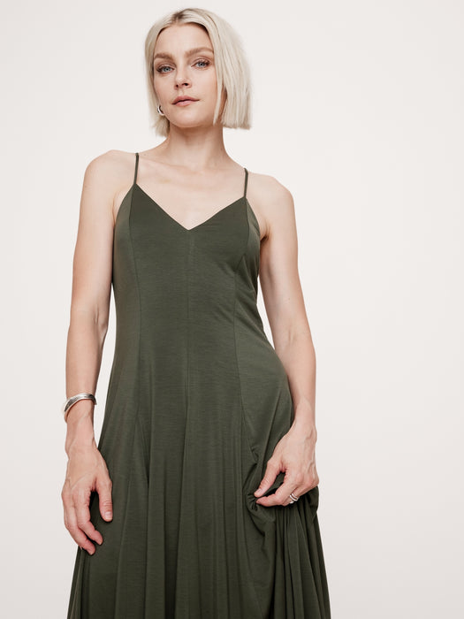 Drapey Jersey Godet Maxi Dress