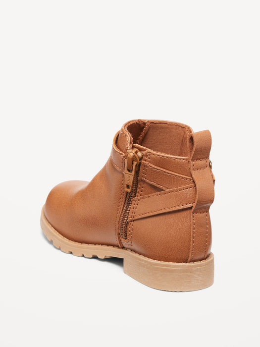 Faux-Leather Buckled Side-Zip Boots for Toddler Girls