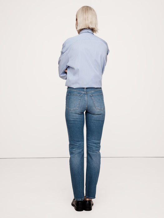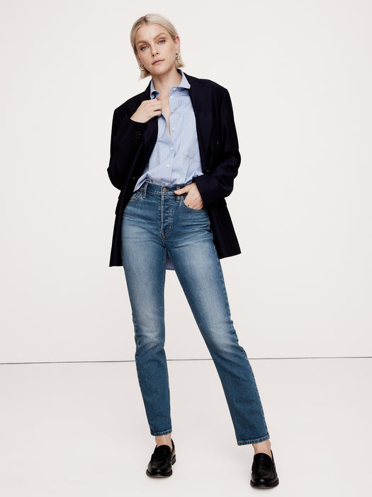 - Cut for a stovepipe-straight fit, these high-waisted jeans are crafted from our organic cotton denim, woven with just a touch of stretch for comfort.